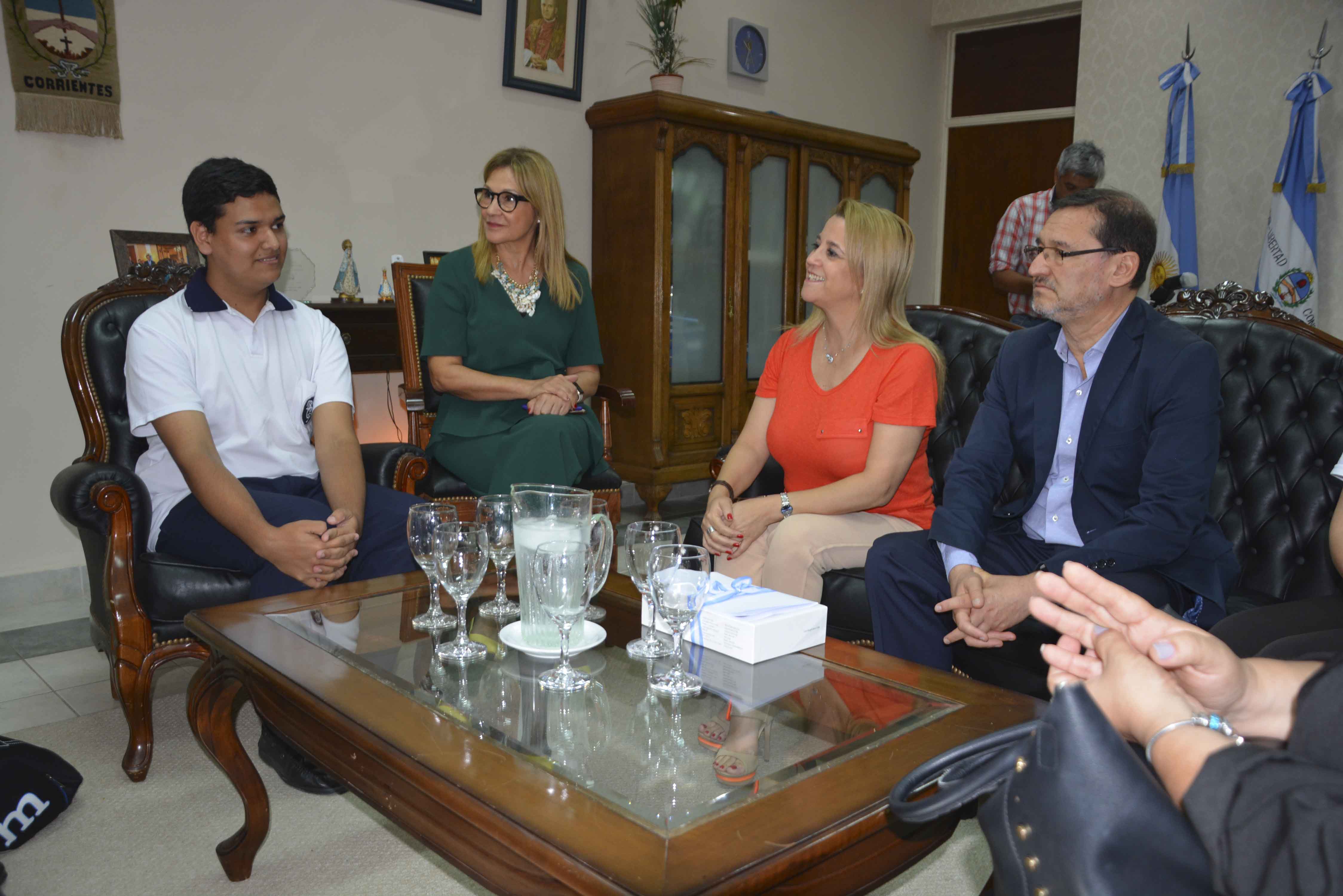La ministra de Educación de la Provincia, Susana Benítez recibió esta mañana al joven José Gabriel Moral de 17 años, estudiante del Colegio Secundario “Brigadier General Pedro Ferré” que culmina sus estudios con asistencia perfecta desde jardín de infantes y siete distinciones en su haber.