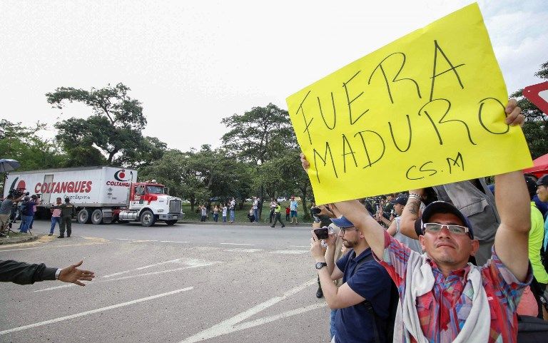 Los primeros camiones con ayuda humanitaria para millones de venezolanos llegaron el jueves a la frontera con Colombia, a la espera de que el gobierno de Caracas les permitiera la entrada, una situación que Estados Unidos no planea forzar.