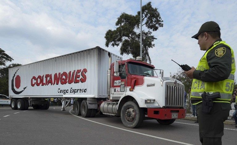 Al menos siete camiones llegaron al centro de acopio de la ciudad colombiana de Cúcuta, coordinado por autoridades colombianas y la Agencia de los Estados Unidos para el Desarrollo Internacional (USAID), informó la agencia Reuters. Según AFP, una decena de vehículos cargados de provisiones entraron a las en el centro de almacenamiento.