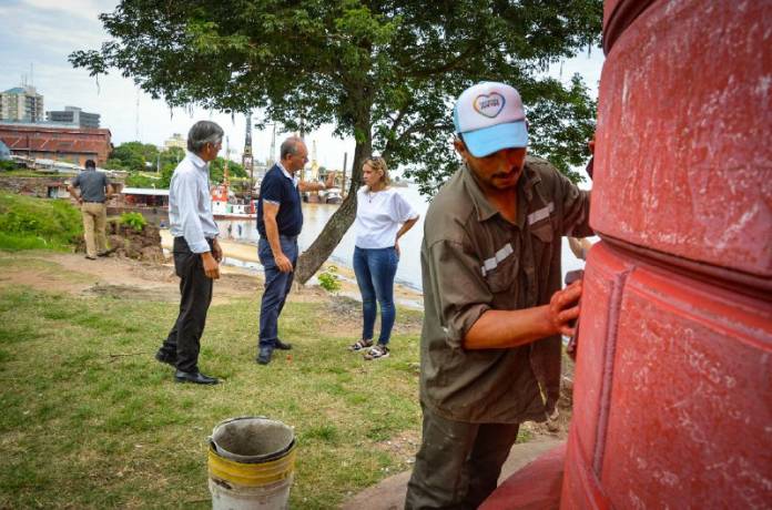 Agentes de la Municipalidad de Corrientes comenzaron con la limpieza integral, cobertura de partes rajadas de las paredes y pintura del faro, con los extremos cuidados lógicos para salvaguardar la originalidad de toda la estructura.