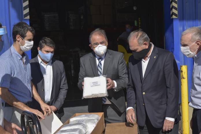 Eduardo Tassano recorrió la planta local de Droguería del Sud SA, desde donde entregaron una importante cantidad de tapabocas que serán destinados al personal de las 36 Salas de Atención Primaria de la Salud. “Estamos muy agradecidos por este aporte”, manifestó el intendente, al tiempo que destacó el potencial de la firma y “su moderna metodología de trabajo”.