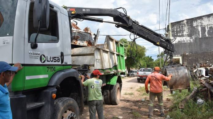 La Municipalidad de Corrientes continúa llevando adelante tareas de limpieza en diferentes puntos de la ciudad. En ese marco, este jueves se retiraron vehículos abandonados y chatarra que obstruía la vía pública en el Pasaje Belcastro al 600.