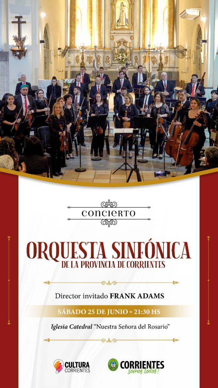 El Gobierno de Corrientes a través del Instituto de Cultura en el marco del Cincuentenario de la Orquesta Sinfónica de la Provincia de Corrientes en la Iglesia Catedral Nuestra Señora del Rosario, se realizará el tercer concierto que la Orquesta Sinfónica brindará a la comunidad.