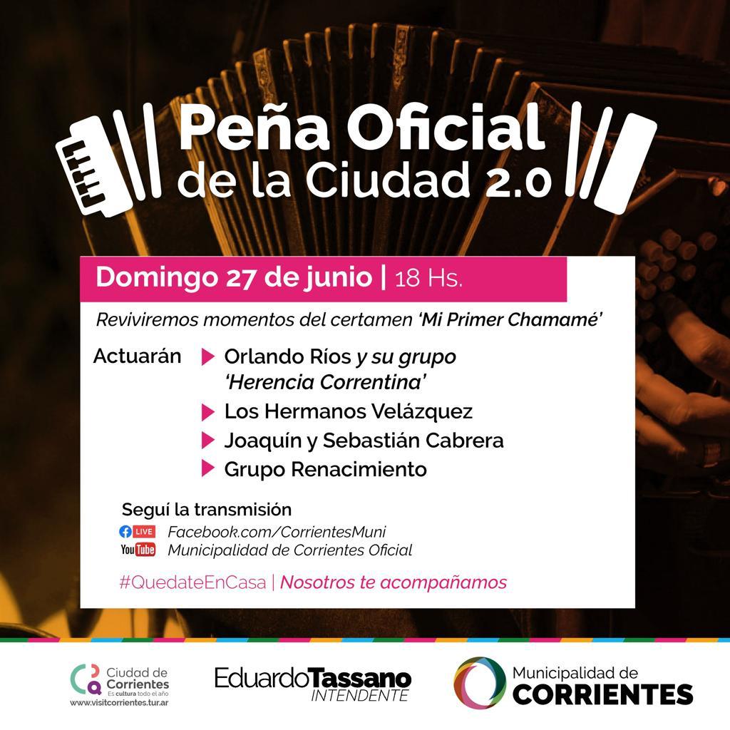Este domingo, desde las 18, nuevamente la Peña Oficial de la Ciudad 2.0 se presentará con lo mejor de nuestra música. Además, se revivirán momentos del certamen “Mi primer Chamamé” y, en la oportunidad se podrá disfrutar de la danza de bailarines de cara a lo que será el Certamen “Corrientes Baila”. Una vez más, el domingo la Municipalidad de Corrientes brindará un espectáculo musical gratuito, bajo la modalidad virtual. Una oportunidad para que los vecinos y aficionados, puedan disfrutar de las actuaciones de destacados artistas chamameceros desde la comodidad de sus hogares. A través de las redes sociales de la Municipalidad de Corrientes, desde las 18, el público podrá disfrutar de la actuación de un variado repertorio de artistas destacados de la música litoraleña entre los que se encuentran: Orlando Ríos y su grupo “Herencia Correntina”, “Los Hermanos Velázquez”, “Joaquín y Sebastián Cabrera” y el grupo “Grupo Renacimiento”. La emisión a través de las redes sociales de la Municipalidad: Facebook (https://www.facebook.com/corrientesmuni/) y YouTube (https://bit.ly/3a3w3bb) contará además con algunos momentos importantes del concurso “Mi Primer Chamamé” y la oportunidad de llevarse interesantes premios. “Como todos los domingos, la Peña Oficial 2.0 va a decir presente, una peña virtual que surgió por la pandemia para hacerle compañía a todos los vecinos para dar un espacio a los nuevos valores que en esta oportunidad podremos verlos”, aseveró el subsecretario de Cultura José Sand. Por su parte, el director General de Expresiones Musicales Populares del municipio, Raúl Báez comentó que la jornada se engalanará con bailarines para invitar a participar a bailarines y a instituciones de danza de la Competencia “Corrientes Baila”. Certamen que surgió con el objetivo de fomentar la difusión de las distintas modalidades de la danza, apoyar a los bailarines y a las distintas instituciones de danza de la capital y cuya inscripción se encuentra abierta. Para más informes e inscripción contactarse al 3794279020 o al correo electrónico: corrientesbailacompetenciamcc@gmail.com |
