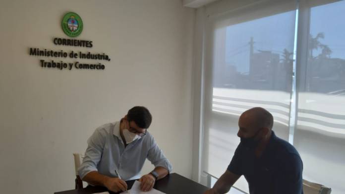 En el Ministerio de Industria, Trabajo y Comercio de la Provincia se llevó a cabo la firma del contrato para realizar obras de infraestructura en el parque industrial y logístico de Paso de los Libres. El titular de la cartera, Raúl Schiavi, y el presidente de la empresa ERETZ S.A, Carlos Rinas, firmaron el acta que formaliza la adjudicación de los trabajos.