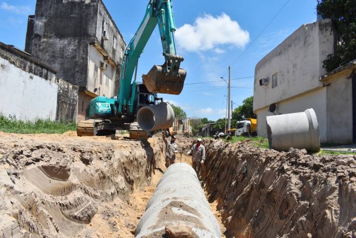 El tendido de caños de 80 centímetros de diámetro, se extiende por Ex Vía desde Necochea hasta casi su cruce con Teniente Ibáñez, donde empalmará con el colector maestro de esa avenida.