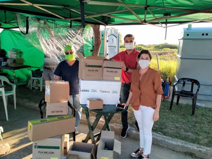 En la carpa, Salud Pública llevó medicamentos varios, entre ellos, insulina, tiras reactivas, enalapril, omeprazol, paracetamol, anticonceptivos, ácido fólico y también se aplican vacunas antigripales. Además, se realizan muestras para diagnóstico de Covid-19.