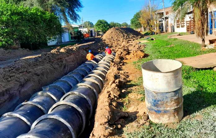 Ya se realizaron 572 metros lineales de desagüe por medio de una batería doble de caños de hormigón armado de un metro de diámetro, a la vez que se construyeron siete cámaras de enlace con 14 sumideros conectados a esas cámaras.