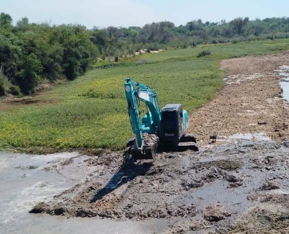 Ante la sedimentación de material y aprovechando esta época de pocas lluvias, el Gobierno Provincial está limpiando el cauce del Riachuelo en el sector ubicado en cercanías del puente en el acceso a la localidad de San Luis del Palmar.
