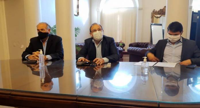 Esta mañana se realizó una conferencia de prensa en el Palacio Municipal, encabezada por el intendente Eduardo Tassano, quien estuvo acompañado por el vice Emilio Lanari y el secretario Coordinación del Gobierno municipal, Hugo Calvano, para dar detalles del protocolo que se implementará a partir de este lunes para reabrir la actividad comercial.