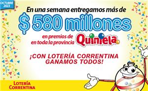¡La lista de ganadores crece cada día y los premios siguen multiplicandose! En una semana entregamos más de $580 millones en premios de Quiniela en toda la provincia. Todo esto es posible gracias a tu apoyo a Lotería Correntina. ¡Con cada apuesta, estás contribuyendo al desarrollo y bienestar de nuestra provincia! ¡CON LOTERÍA CORRENTINA GANAMOS TODOS!