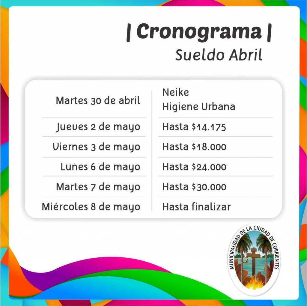 A partir de mañana 30 de abril inicia el pago de haberes a los empleados municipales de Capital. El primer tramo como es habitual corresponde el pago de personal de higiene urbana.