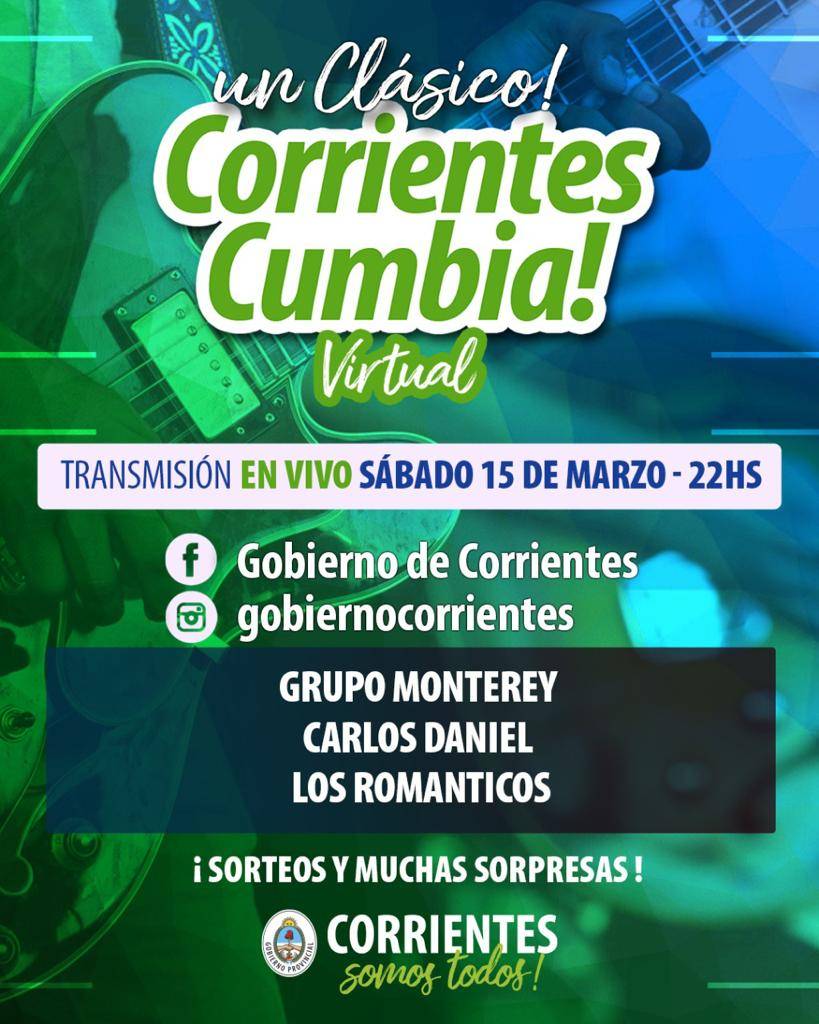 De esta manera el Corrientes Cumbia Virtual, este sábado 15 de mayo a las 22 presentará al grupo “Monterey”, “Carlos Daniel” y “Los románticos”.