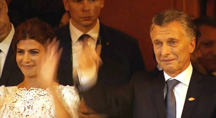 Dentro de la sala, aguardaban en las primeras filas frente al escenario el resto de los invitados a la gala, entre ellos los ministros del Gabinete nacional, el asesor ecuatoriano Jaime Durán Barba y la gobernadora bonaerense, María Eugenia Vidal, quien asistió acompañada por su hija mayor.