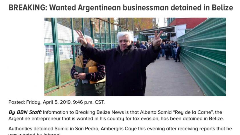 La información es provista por uno de los principales medios de ese país, Breaking Belize News (BBN). Según este portal, las autoridades policiales habrían detenido a Samid en San Pedro, una localidad del Cayo Ambergris, tras recibir el informe de Interpol. Un testigo, cuyas iniciales son J.K., habría sido quien dio aviso a la Policía local de la zona Cayo Ambergris, en el norte del país. Desde BBN anticiparon que se espera un informe por parte de las fuerzas de seguridad en las próximas horas.
