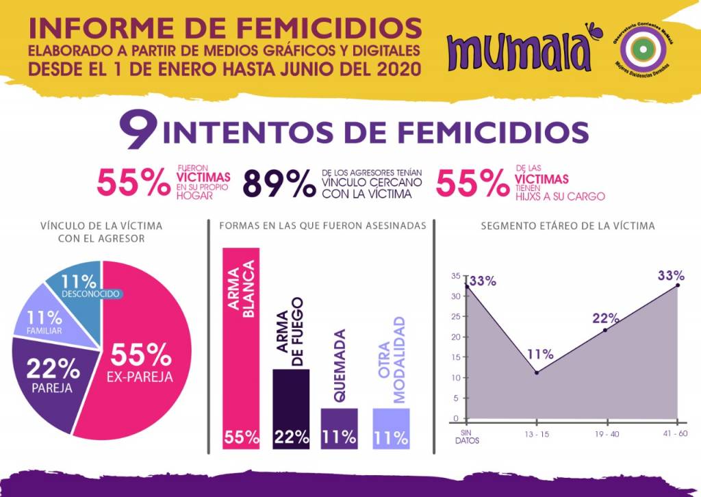 En el 3er Informe se dan a conocer los datos actuales del Registro de Femicidio del Observatorio de MuMaLa nacional y provincial. Tal es así que desde el 1ro de enero hasta el 30 de mayo se registraron en el país 140 muertes violentas, 124 femicidios, 2 trans/trevesticidios, 112 intentos de femicidios y 61 femicidios se registraron desde el 12 de marzo. El 68% de las víctimas fueron asesinadas en su propio hogar o en la vivienda compartida. El 20% de las víctimas habían hecho la denuncia. 151 niños y adolescentes se quedaron sin su madre.