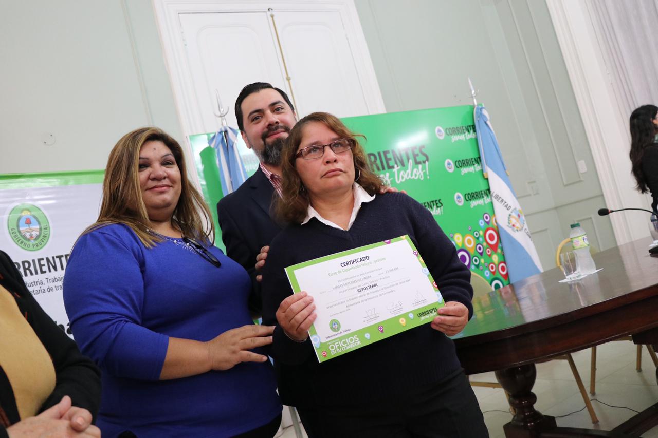 En el Salón Verde de Casa de Gobierno se realizó esta mañana el acto de entrega de certificados del Programa de Capacitación “Oficios en tu Comedor”, una propuesta del Gobierno Provincial que se implementa a través del Ministerio de Desarrollo Social y la Subsecretaría de Trabajo, dependiente del Ministerio de Industria Trabajo y Comercio.
