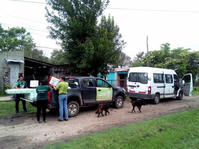 “En Parada Pucheta se entregó este jueves 50 módulos alimentarios, 10 colchones, 10 frazadas, 200 chapas negras y 10 rollos plásticos”, agregó luego y remarcó que “en estas tres ciudades del departamento de Paso de los Libres también estuvieron este jueves los equipos técnicos del Ministerio, mediante trabajadores sociales con apoyo de Defensa Civil, haciendo los relevamientos de las familias afectadas, igual que en Bonpland”.