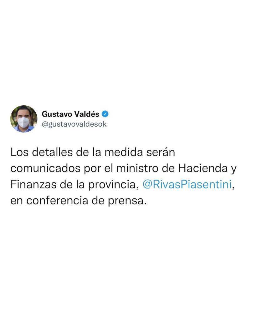 El mismo Gobernador adelantó además que los detalles serán comunicados por el ministro de Hacienda y Finanzas de la Provincia, Marcelo Rivas Piasentini, a través de una conferencia de prensa que tendrá lugar la semana que viene.