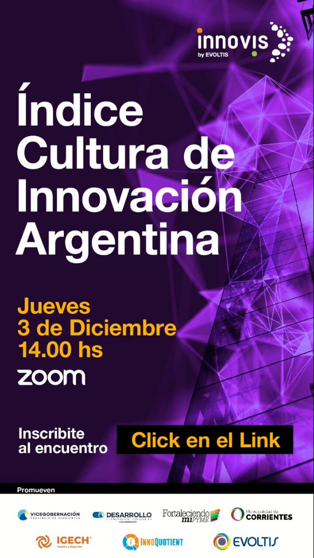 De la mano de IGECH con el apoyo de la Municipalidad de la Ciudad de Corrientes y Vice Gobernación de la Provincia de Corrientes, compartiremos los resultados consolidados del Índice de Cultura de Innovación Argentina en las organizaciones, sus fortalezas, sus oportunidades de mejora y los aprendizajes relevados en éste diagnóstico, así como las tendencias globales en lo referido a Innovación.