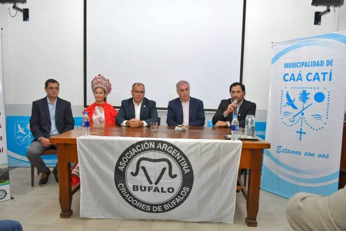 Acompañaron la presentación el subsecretario de Turismo, Carlos Gatti; el subsecretario de Desarrollo Turístico, Oscar Macias; el representante de la Asociación Argentina de Criadores de Búfalo, Marcelo Breard; y demás autoridades provinciales y municipales.