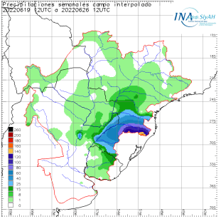 Las lluvias podrían concentrarse sobre la misma región sobre la que llovió en la última semana, es decir, la cuenca media y alta del río Uruguay y la cuenca del río Iguazú, tal lo señaló el último informe del Instituto Nacional del Agua (INA), publicado por el Instituto Correntino del Agua y del Ambiente (ICAA) en su sitio web www.icaa.gov.ar.