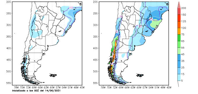 En la semana del 22 al 28 de junio, se espera la ocurrencia de precipitaciones entre los 5 a 10 milímetros por día sobre la cuenca del río Iguazú y del orden de los 5 milímetros en el tramo medio del Río Paraná para el día 22 y el período comprendido entre el 24 al 27 de junio.