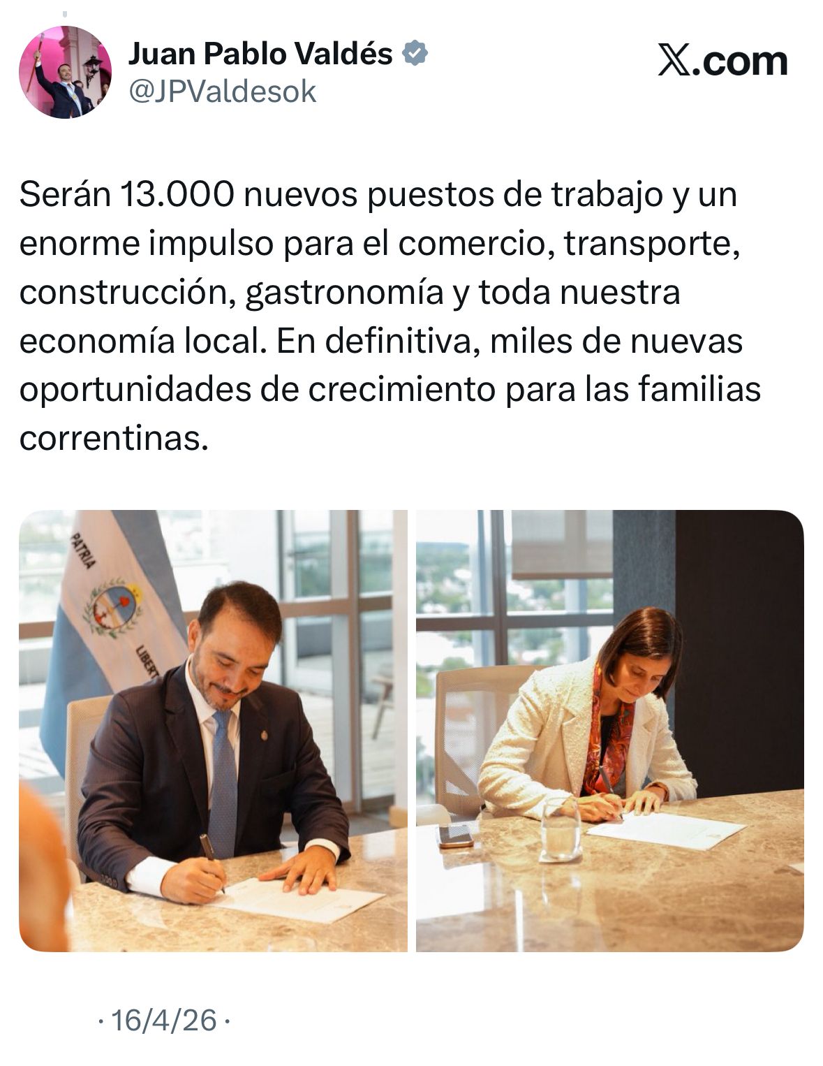 Hoy, el gobernador Juan Pablo Valdés dio el primer paso para poner en marcha, en el Parque Industrial Ituzaingó, la construcción de esta fábrica de última generación, que será la más grande de fibra larga de pino del mundo. La iniciativa, que utilizará alta tecnología para la producción, es liderada por ARPULP S.A., una empresa argentina con accionistas de larga trayectoria en la provincia de Corrientes. “Esta es una oportunidad de crecimiento y desarrollo para la provincia, que servirá para crear empleo genuino e impactará en la prosperidad de miles de familias correntinas”, dijo el gobernador.