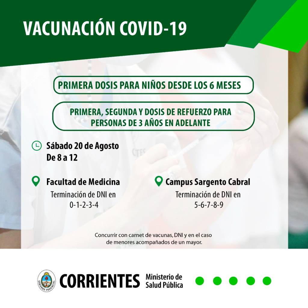 Se recuerda concurrir con DNI y carnet de vacunación. En caso de menores, acompañados por un mayor.