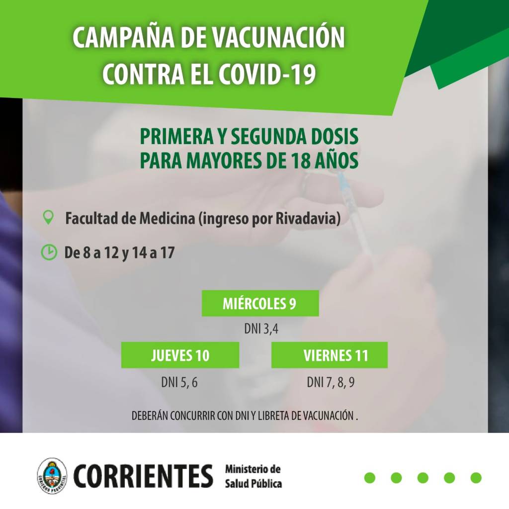 Será por terminación de DNI de 14 a 17, en los lugares designados según grupo etario. El sábado de 20 a 24 continúa “La noche de las vacunas”.