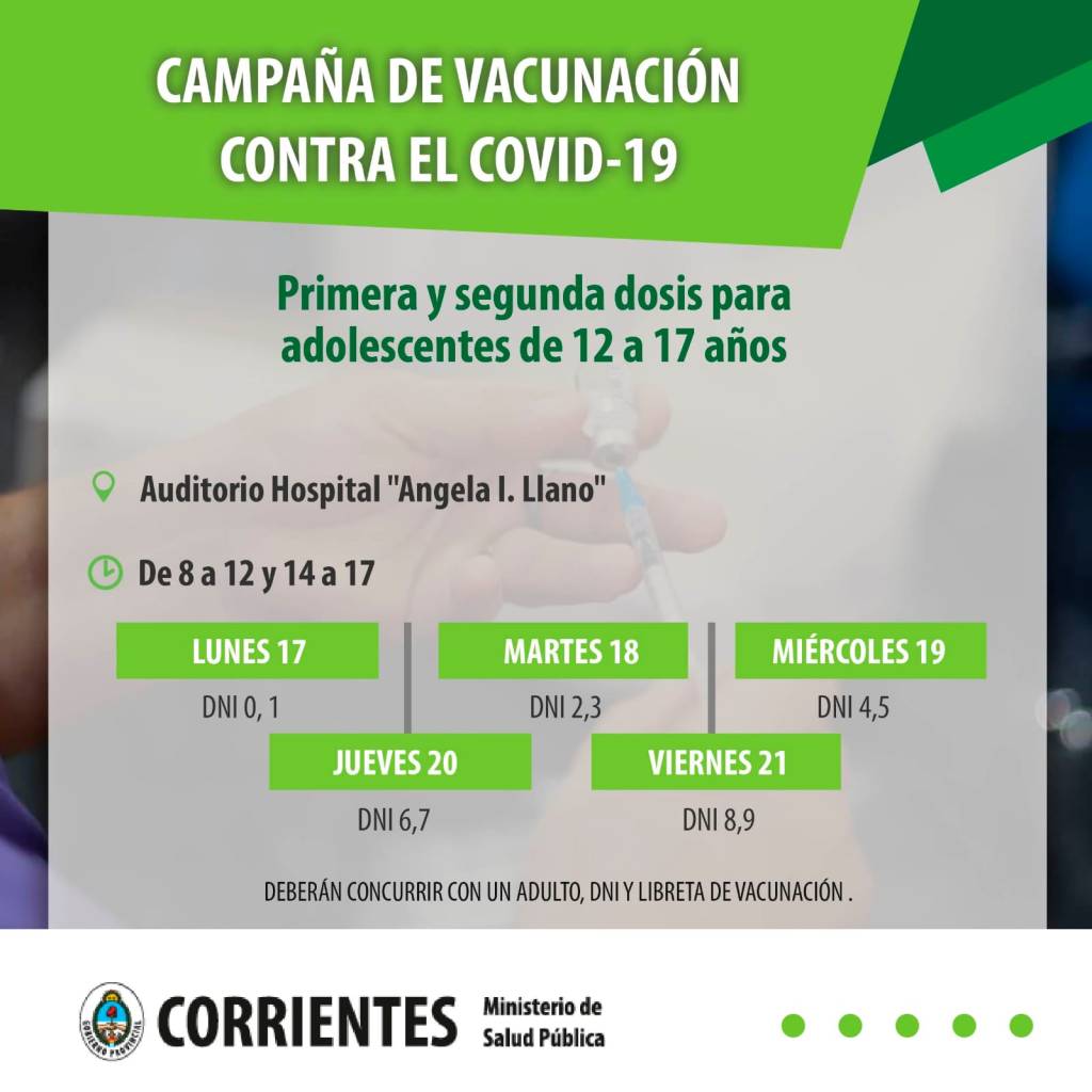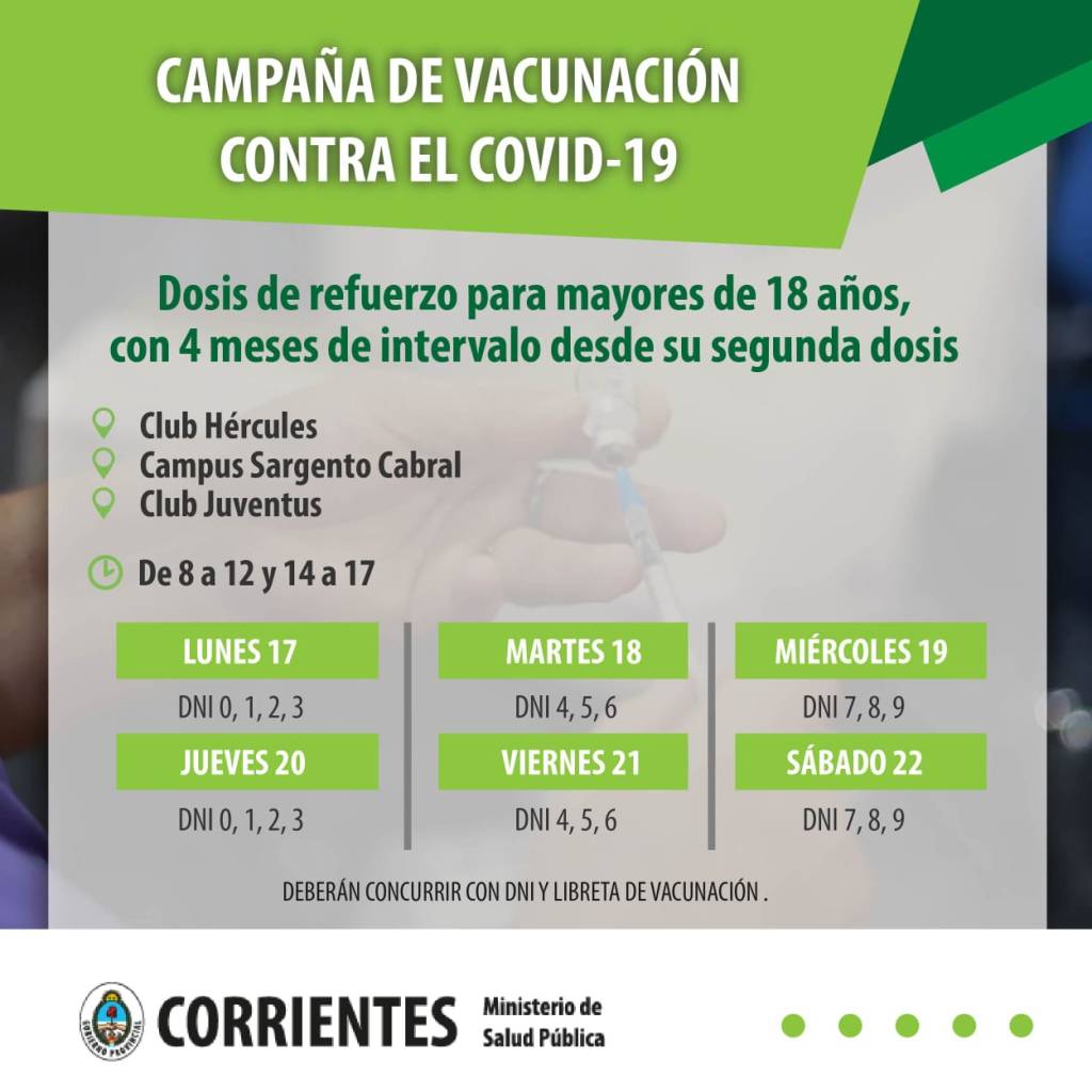 Durante la semana se iniciarán, completarán y reforzarán esquemas. Será en los puntos designados según grupo etario y por terminación de DNI. Se recuerda concurrir el día correspondiente con carnet y el mencionado Documento de Identidad.