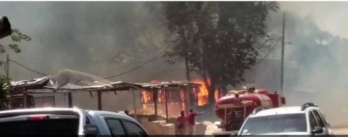 Estaba prevista la visita del gobernador. El fuego afectó a viviendas y vecinos colaboran para controlar las llamas.