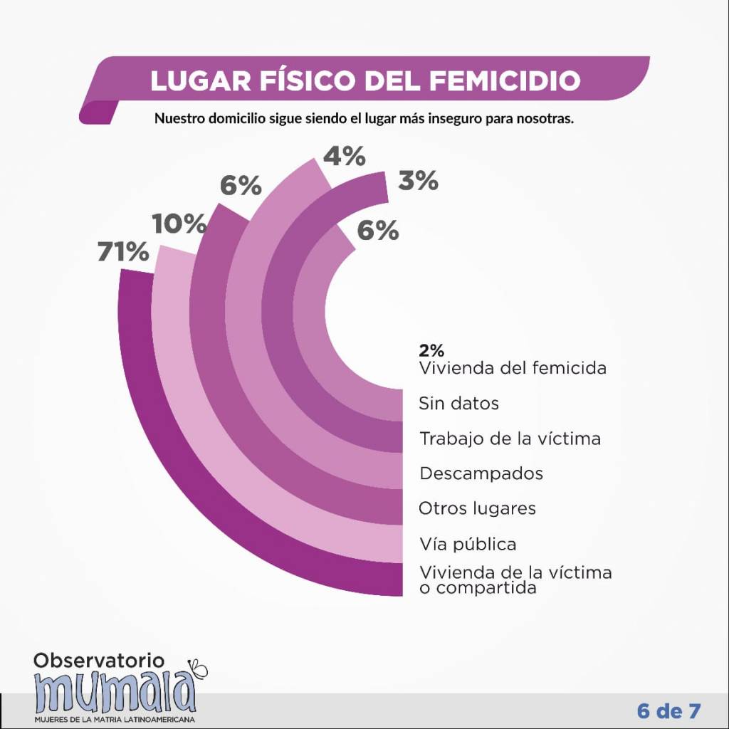 - 71% vivienda de la víctima o compartida.