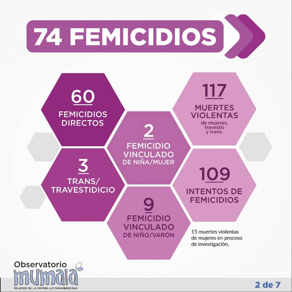 El Registro Nacional de Femicidios informó, que según estadísticas, se cometieron 74 femicidios, vinculados y travesticidios cada hora y 39 minutos en lo que va del año.