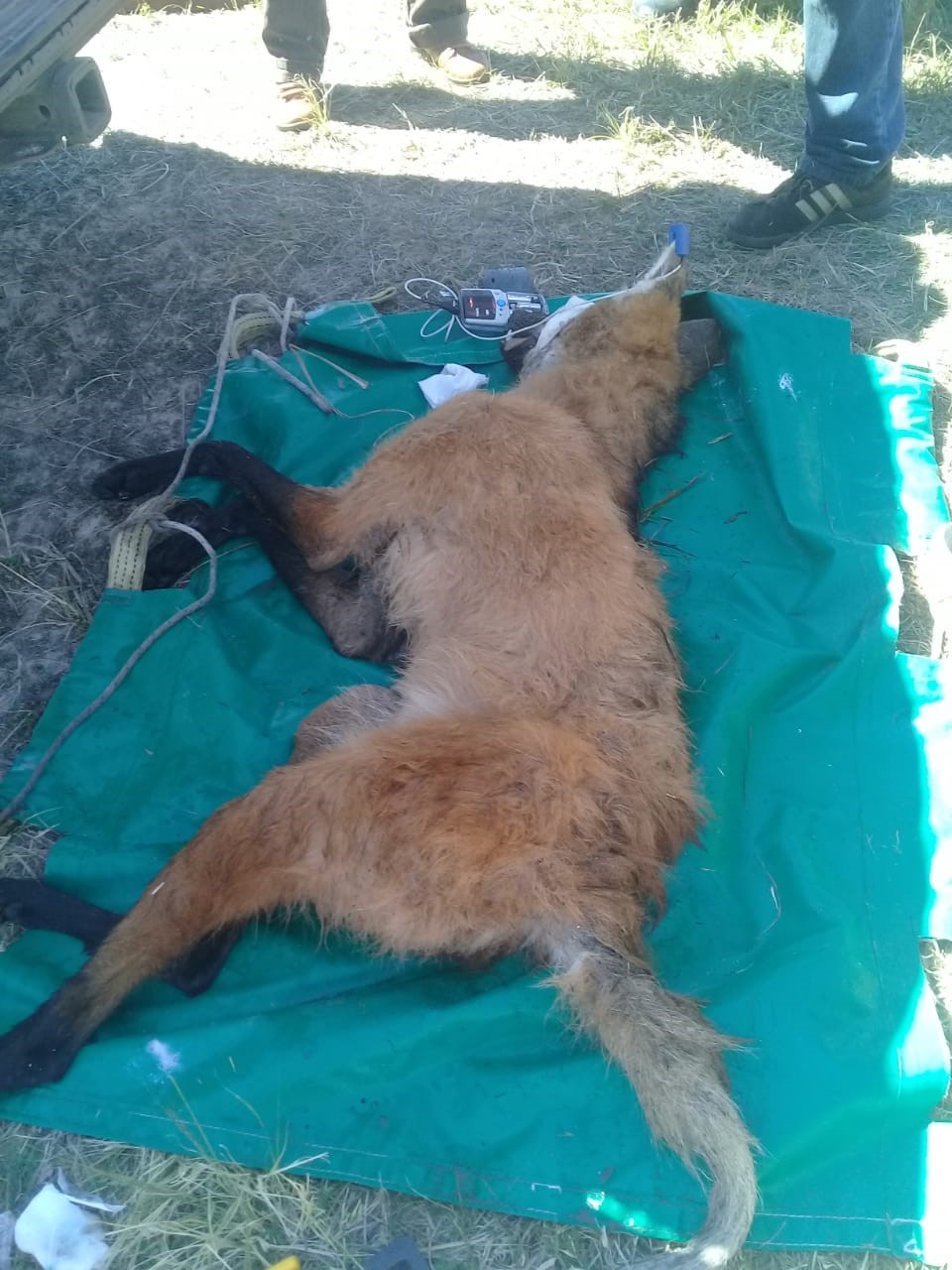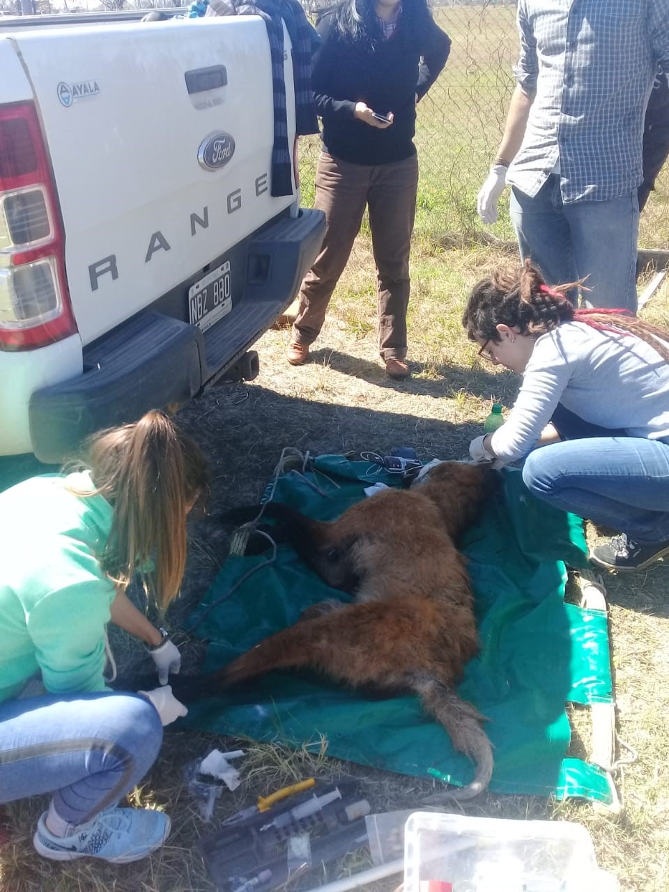 Ante esta situación, personal del Centro Aguará, de la Unidad de Rescate de Fauna y de la ONG “The Conservation Land Trust” acudieron al lugar, donde encontraron al Aguará Guazú refugiado en una alcantarilla, por lo que luego de varios intentos por sacarlo sin intervención invasiva, los Médicos Veterinarios participantes decidieron dormirlo mediante un dardo con anestesia lanzado con cerbatana a escasa distancia.