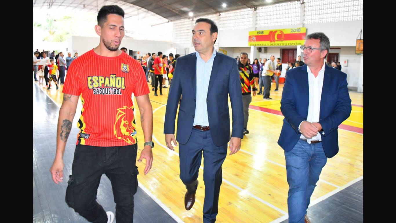 Finalizado el acto las refacciones integrales del Servicio de Laboratorio, de Rayos X y Consultorio de Kinesiología del Hospital Dr. Juan Ramón Gómez, en la localidad de Santa Lucía, el gobernador Gustavo Valdés se dirigió hasta el Club Social y Deportivo Español, ubicado por Placido Martínez al 928, para inaugurar el piso de parquet, y entregar equipamiento deportivo e indumentaria. En este contexto, Valdés destacó la importancia del deporte y se compromete a seguir invirtiendo en instalaciones deportivas.