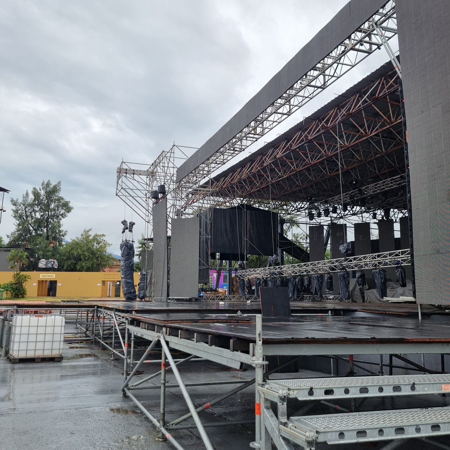 “Durante las horas de lluvia no se pudo trabajar, pero contrarreloj el equipo de trabajo del Instituto de Cultura finalizó el acondicionamiento del anfiteatro y podemos decir que está todo listo para esta primera noche de la Fiesta Grande”, señaló el presidente del Instituto de Cultura de Corrientes, Arq. Gabriel Romero.