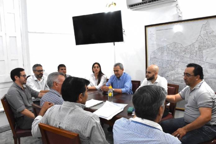 El secretario de Coordinación de Gobierno, Hugo Calvano, encabezó el encuentro que contó con referentes gremiales de la Asociación de Obreros y Empleados Municipales (AOEM).