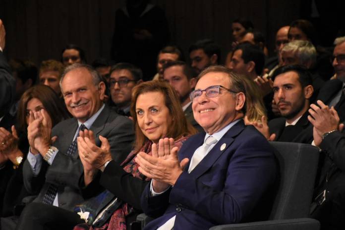 “La verdad que disfrutamos de unos números muy importantes, con artistas que conmueven. Tanto el coro municipal como Manuel Núñez Camelino y Florencia de Pompert, que está cantando ahora, son excelsos”, ejemplificó Tassano. “Así que la verdad es que es una delicia estar aquí esta noche”, manifestó el intendente, quien participó del evento junto al vice Emilio Lanari.