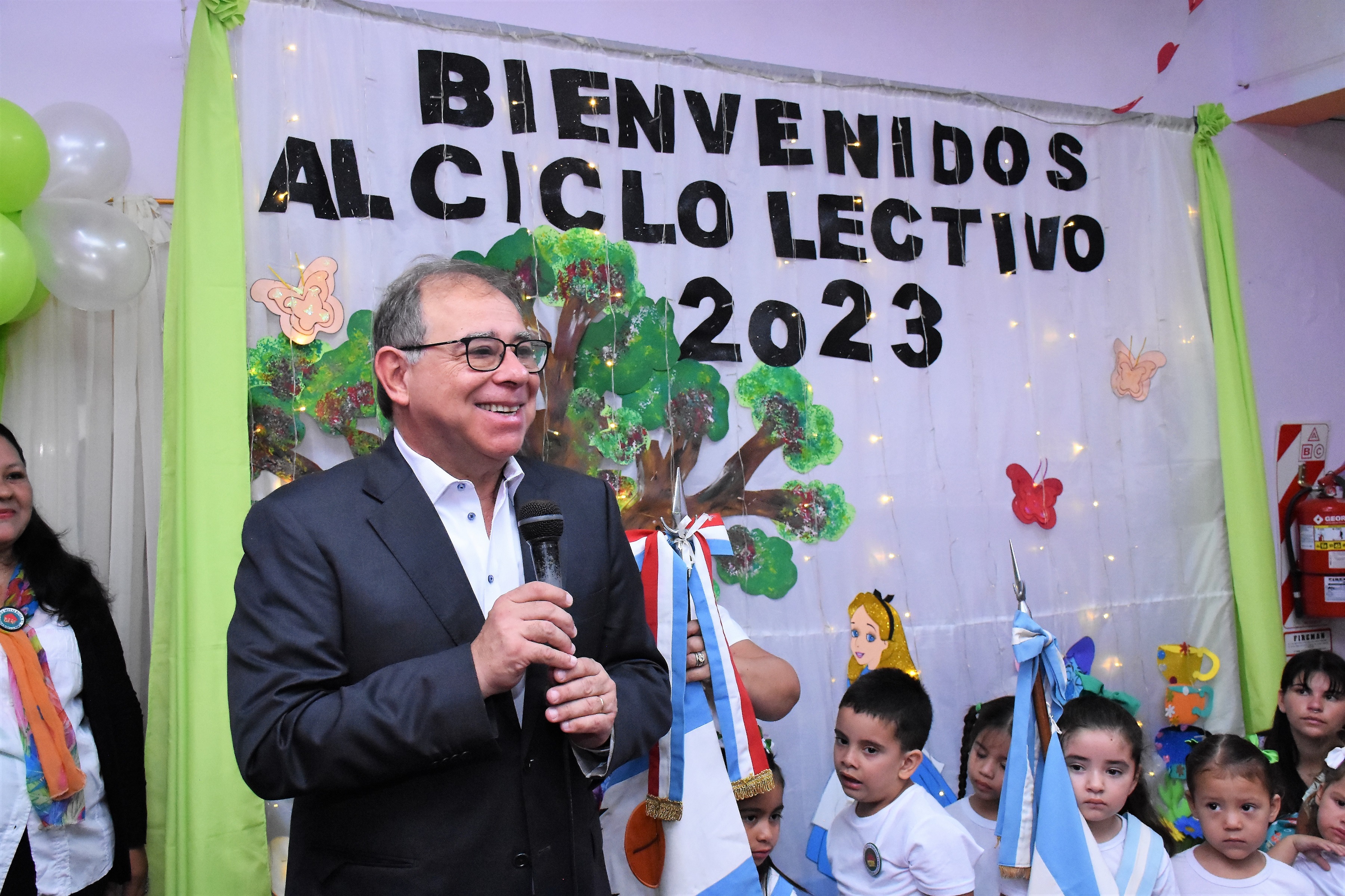 “Sabemos que el sistema educativo depende del Gobierno provincial y nosotros hacemos nuestro aporte coordinado con estos jardines que mantenemos”, dijo el intendente al encabezar, junto con el vicegobernador Braillard Poccard, el acto en el Centro de Desarrollo Infantil XI del barrio Virgen de los Dolores. En la ciudad funcionan 15 “Mitaí Roga” con una población escolar total de 2.000 niños, pero en breve se sumará el número 16, según confirmó el titular del Ejecutivo municipal. El intendente Eduardo Tassano, acompañado por el vicegobernador Pedro Braillard Poccard, encabezó este lunes el acto de inauguración del ciclo lectivo 2023 de los Centros de Desarrollo Infantil (CDI) “Mitaí Roga”, que se llevó a cabo en el CDI XI del barrio Virgen de los Dolores. En la ocasión, además, Tassano confirmó la pronta inauguración de un nuevo CDI, el número 16, en el barrio Pirayuí, sobre la avenida Cuba.