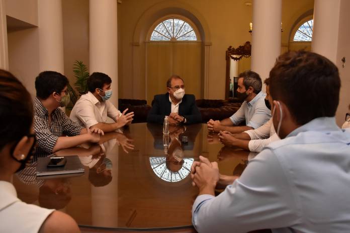 Tassano, junto al secretario de Desarrollo Económico, Juan Esteban Maldonado Yonna y al subsecretario de Desarrollo de Economías Urbanas, Francisco Ingaramo, recibió en la oportunidad a Eduardo y Laura Cena, propietarios de la firma Che Cambá Materiales, que prevé la instalación de una conformadora y plegadora de chapas en el parque industrial; a Juan Tarragó y Diego Cheme, de Promacon – Velas del Litoral, el cual llegará al predio con una fábrica de velas; y a Hilda Páez, de Ingeniería y Gestión (asesoramiento profesional a empresas).