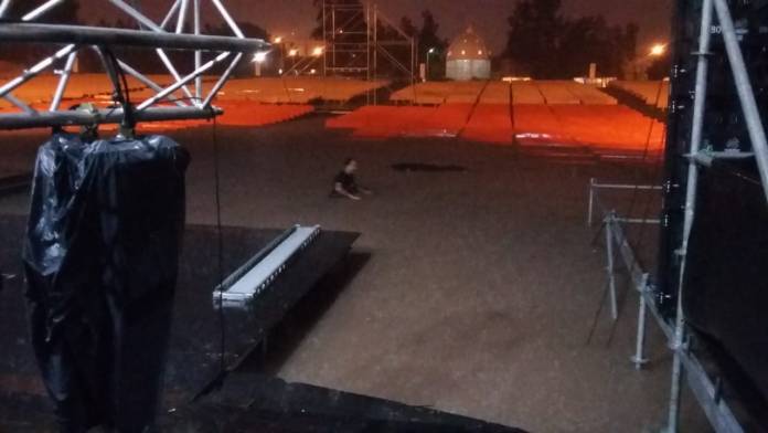 En el anfiteatro Cocomarola el agua acumulada en la zona del escenario afectó los arreglos que se estaban haciendo para la Fiesta del Chamamé, cuyo inicio está previsto para el viernes.