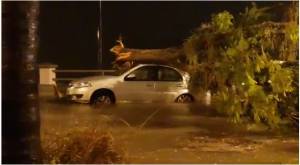 Fuertes vientos y una intensa lluvia anegaron calles y provocaron la caída de árboles. El temporal cayó a la noche, luego de una jornada con clima inestable y húmedo.