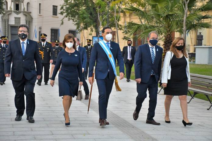 El gobernador Gustavo Valdés encabezó este viernes, junto al intendente Eduardo Tassano, la conmemoración oficial por el 205º aniversario de la Declaración de la Independencia de la Nación. El acto se limitó a las rutinas protocolares de la fecha patriótica debido a la pandemia y el Mandatario provincial deseó “salir pronto” de esta situación por la que atraviesa el país “para avanzar hacia una patria libre”. Para ello consideró necesario continuar sin pausa el plan de vacunación, pero también eliminar las restricciones que impiden el crecimiento de las economías regionales.