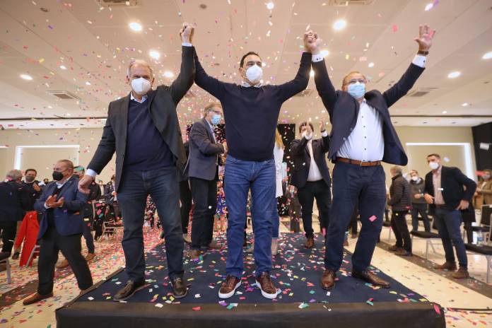 El gobernador y candidato a la reelección, Gustavo Valdés encabezó este sábado, junto a la fórmula de Eduardo Tassano y Emilio Lanari, la presentación de candidatos capitalinos de ECO + Vamos Corrientes. Tuvo lugar en un salón con protocolos Covid-19 y el Mandatario provincial demostró en la ocasión que “no fue un mero slogan de campaña electoral” la propuesta de “trabajar juntos” con el intendente y vice que también van por su reelección. Sostuvieron que de este modo la ciudad hizo realidad una “transformación” en su infraestructura, mediante dos mil calles intervenidas con pavimento o ripio, más de 200 kilómetros de desagües acondicionados, diez mil luminarias led nuevas y decenas de plazas recuperadas, además de otras muchas acciones, con el compromiso de “seguir mejorando” la Capital en los próximos cuatro años, asegurando que todas las calles con cordón cuneta tendrán asfalto, entre otros nuevos desafíos.