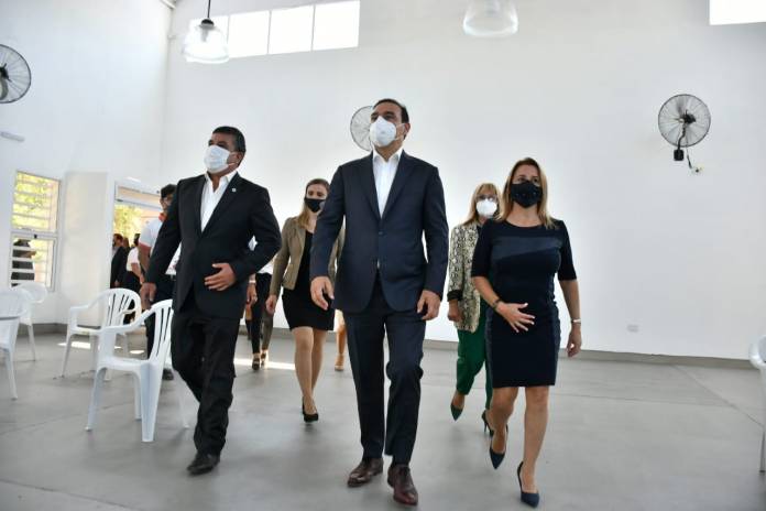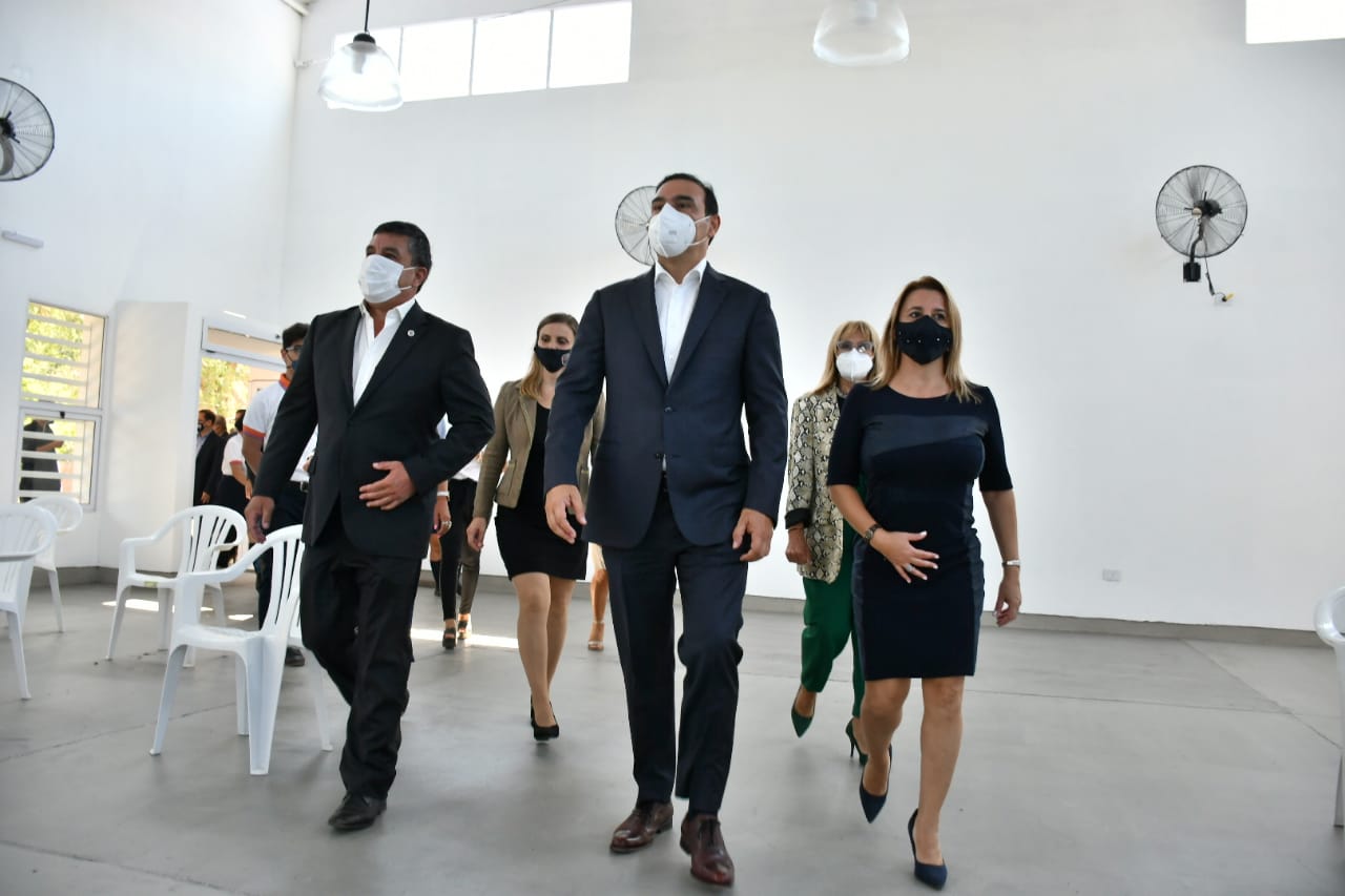 Acompañaron al gobernador Valdés en el acto de inauguración, el intendente local, José Cheme; los ministros, de Educación, Susana Benítez; de Coordinación y Planificación, Horacio Ortega; de Seguridad, Juan José López Desimoni y de Desarrollo Social, Adán Gaya; legisladores nacionales y provinciales; la directora de Nivel Secundario, Práxedes López; la presidente del Consejo General de Educación, María Inés Pérez de Varela; la rectora de la Escuela Técnica del barrio Malvinas Argentinas, Carolina D’onofrio; secretarios y subsecretarios provinciales y municipales, intendentes de localidades vecinas, representantes de fuerzas de seguridad, alumnos y docentes.
