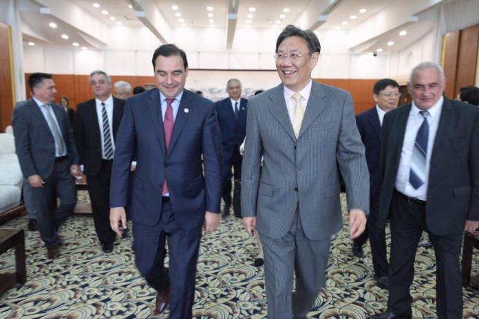 En primer lugar fue recibido por el gobernador de Heilongjian, Wentao Wang, con quien, luego de saludo protocolar e intercambio de presentes, habló de las características de la provincia y cuáles son las inversiones que realizan actualmente en la Argentina, siendo el segundo socio comercial del país.