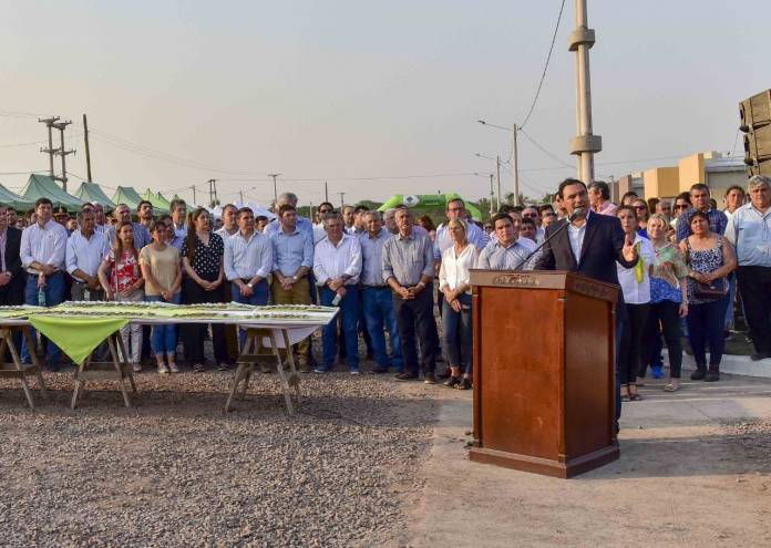 Luego, describió que “cuando uno ingresa por la mano izquierda hay un largo camino que en este momento es un cordón-cuneta con un ripio, ese camino conduce al tan ansiado Parque Industrial”  y desde allí es “donde queremos generar mano de obra para nuestros jóvenes y para nuestras familias”.