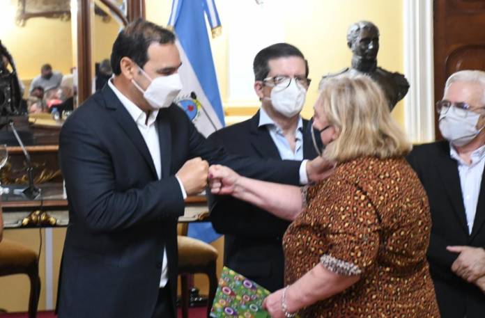 El gobernador Gustavo Valdés entregó este lunes, en un acto que tuvo lugar en el Salón Amarillo de Casa de Gobierno, subsidios por 34 millones de pesos a 47 asociaciones de Bomberos Voluntarios de la Provincia, para reforzar el trabajo de la lucha contra los incendios en territorio correntino. En la oportunidad, el primer Mandatario manifestó que el Estado no puede estar ausente ante tanto esfuerzo puesto por los bomberos en esta titánica tarea e hizo un llamado a la población en general a no prender fuego, ya que “muchos de los incendios se producen por la mano del hombre”.
