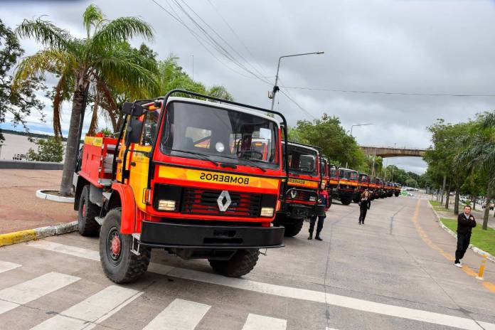 El gobernador Gustavo Valdés entregó este lunes 22 autobombas a asociaciones de bomberos voluntarios de toda la Provincia. Las mismas fueron adquiridas por el Gobierno de Corrientes con el objetivo de dar una respuesta ágil y eficaz ante incendios forestales, protegiendo así a los habitantes y a los bosques de todo el territorio correntino. Durante el acto, realizado en la Costanera de Capital, el Mandatario prometió apoyo para el centro de entrenamiento que la Federación de Bomberos Voluntarios tiene proyectado.